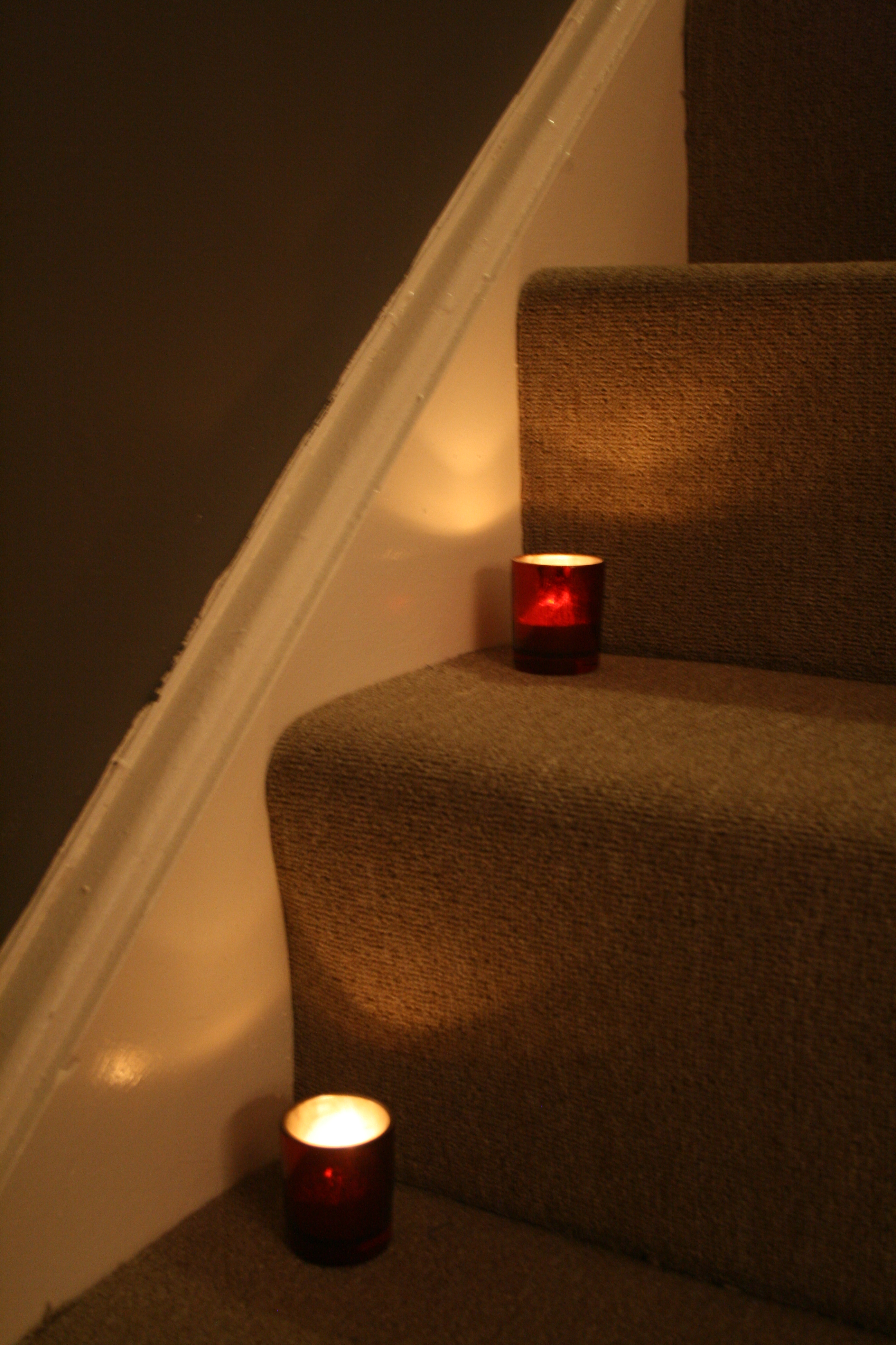 So, here’s a photo of some candles that I’ve used over Christmas that I just can’t say goodbye to. Instead they are now an added feature to my staircase! They create such a homely glow that looks lovely in the evening when I’m snuggled on the sofa; so I think that they will have to stay all winter!