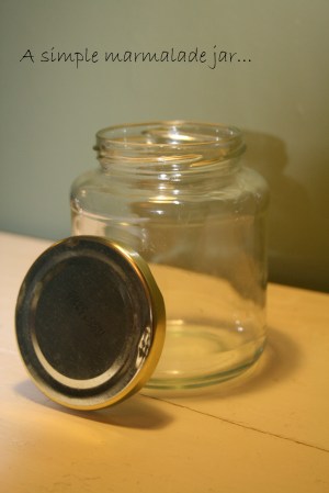 All you need is an empty marmalade/jam jar, some fabric glue, a scrap of fabric and a piece of ribbon.