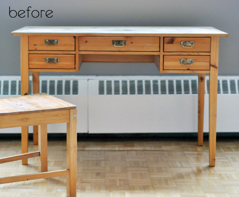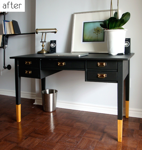 Good evening to you, hope you’ve had a great weekend. I wanted to share this great ‘before and after’ that I came across on Design*Sponge this week as I thought it was fantastic. It makes me want to do something similar – I just need to find an old desk first!