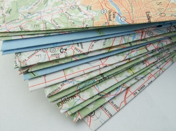 I love these envelopes made from old maps. I have a special little something to send to my friend in Russia and these envelopes reminded me to get on with it!