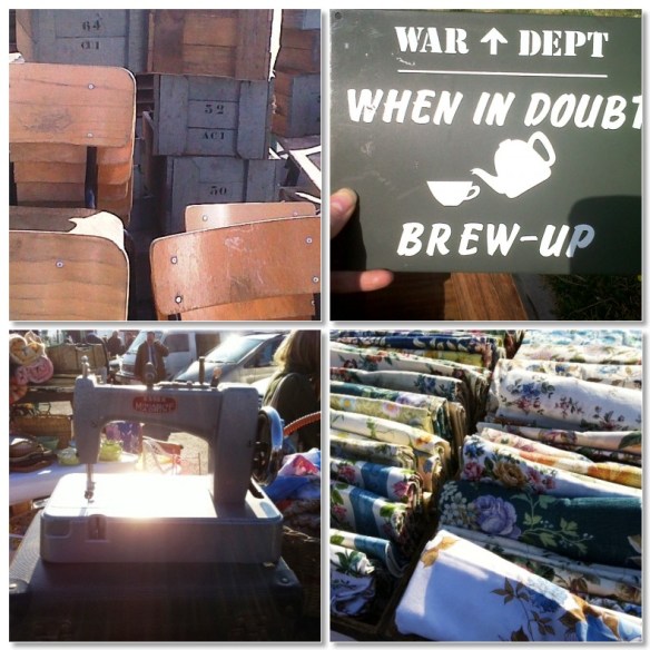 Time to share some phone camera pics of our early morning at Kempton Antiques market last Tuesday. To say we had a successful morning would be putting it lightly! We were on the look out for an antique chest to use as a TV cabinet and also some dining chairs. We were fortunate enough to find all of these (more photos to follow in part 2). For now, here’s some other wares that caught my eye. Check out the cool ‘brew up’ sign. I took a hurried photo to send to my friend Lou who I knew would appreciate it!
