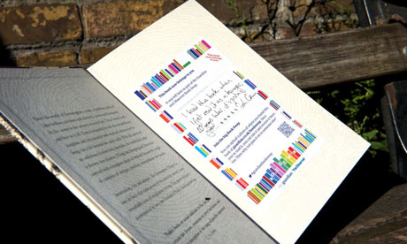 I thought I’d share a very cool book swap idea with you tonight as I’m planning on doing it tomorrow morning – hopefully it’ll brighten my Monday! It’s a book swap run by the Guardian and Observer newspapers and the idea is to basically choose a book that you have read and no longer need, then put on one of the newspaper’s book labels which advertise that this book is now up for grabs and leave in a public place for someone to find! If you’re interested in joining in you can download a copy of the label here. You can then post the location of your book on a flickr page and also join in on twitter if you so wish!