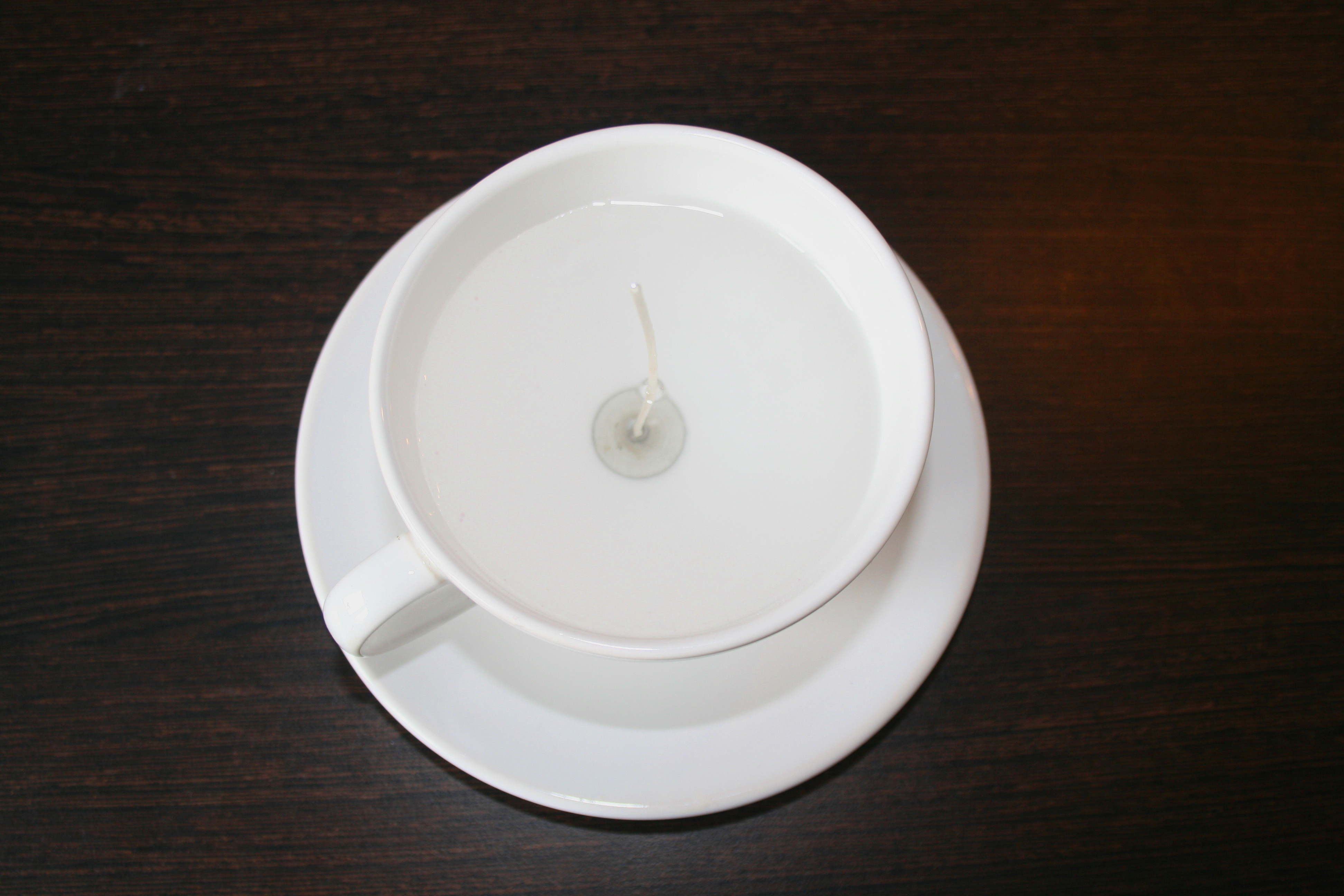 I started this candle craft one Sunday afternoon when I had an hour to myself and needed to do something that reminded me that I do have a life apart from my job! Mr P and I have a cupboard full of crockery that we were bought for wedding gifts but to be honest, have never really gotten round to using that much. I don’t know why I thought we would need 6 cup and saucers, 6 mugs, 6 dinner plates and 6 entertaining plates – to name a few things – when we were first married! We have used lots of the items I must hasten to add but never really the cups and saucers. Instead of leaving them to lie in the cupboard forever, I decided to make candles in some of the tea cups. They look brilliant lit up in our living room. Here’s how I did it: