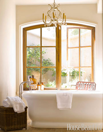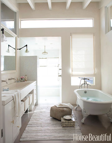 One of my most popular posts is when I spoke about decorating our bathroom in navy blue. We are still in the process of this so a home tour of our bathroom will follow when it’s all completed, but for now, I wanted to share with you with these gorgeous bathrooms from House Beautiful.