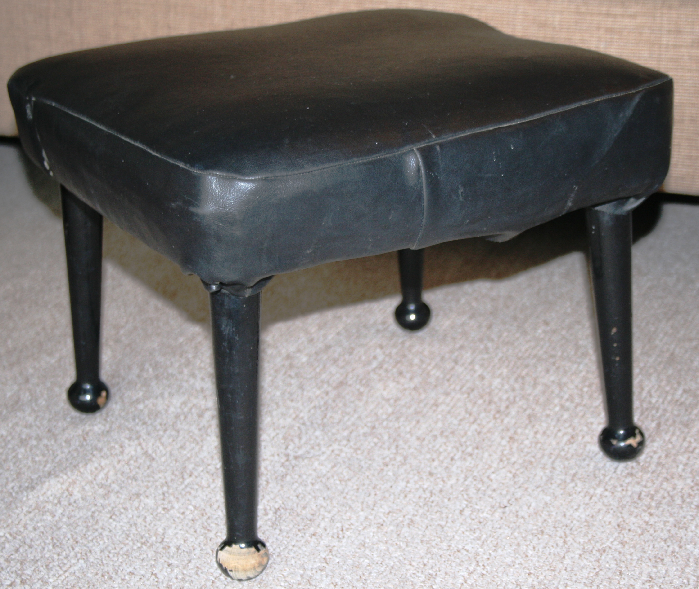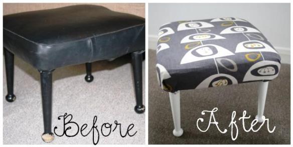 Firstly, I removed the leather from the foot stool. It was screwed into place so once I found my screwdriver it was a pretty easy job to take off the leather.