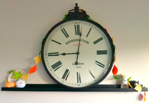 Well here it is. My first attempt at the #styling the seasons challenge! I wrote about this concept in last week’s Friday links and spent some time last weekend thinking about where and how to style a space in our home. I decided upon the kitchen as we have recently been painting in there and trying to give the area a bit of a face lift. Also we have a thin black picture shelf which I thought would be easy to style by adding a few autumnal touches. We use the shelf to house our big, beautiful station clock and trust me, it’s not easy to be late in our house with that huge thing ticking away at you every morning.