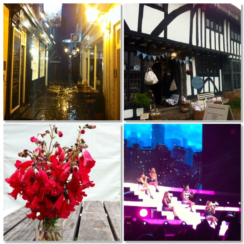 Images via Celebrate Creation. From top right: A rainy evening in Richmond, Surrey; Tudor houses in Chilham, Kent; flowers from the Handmade fair a few weeks ago; The Saturdays in concert.