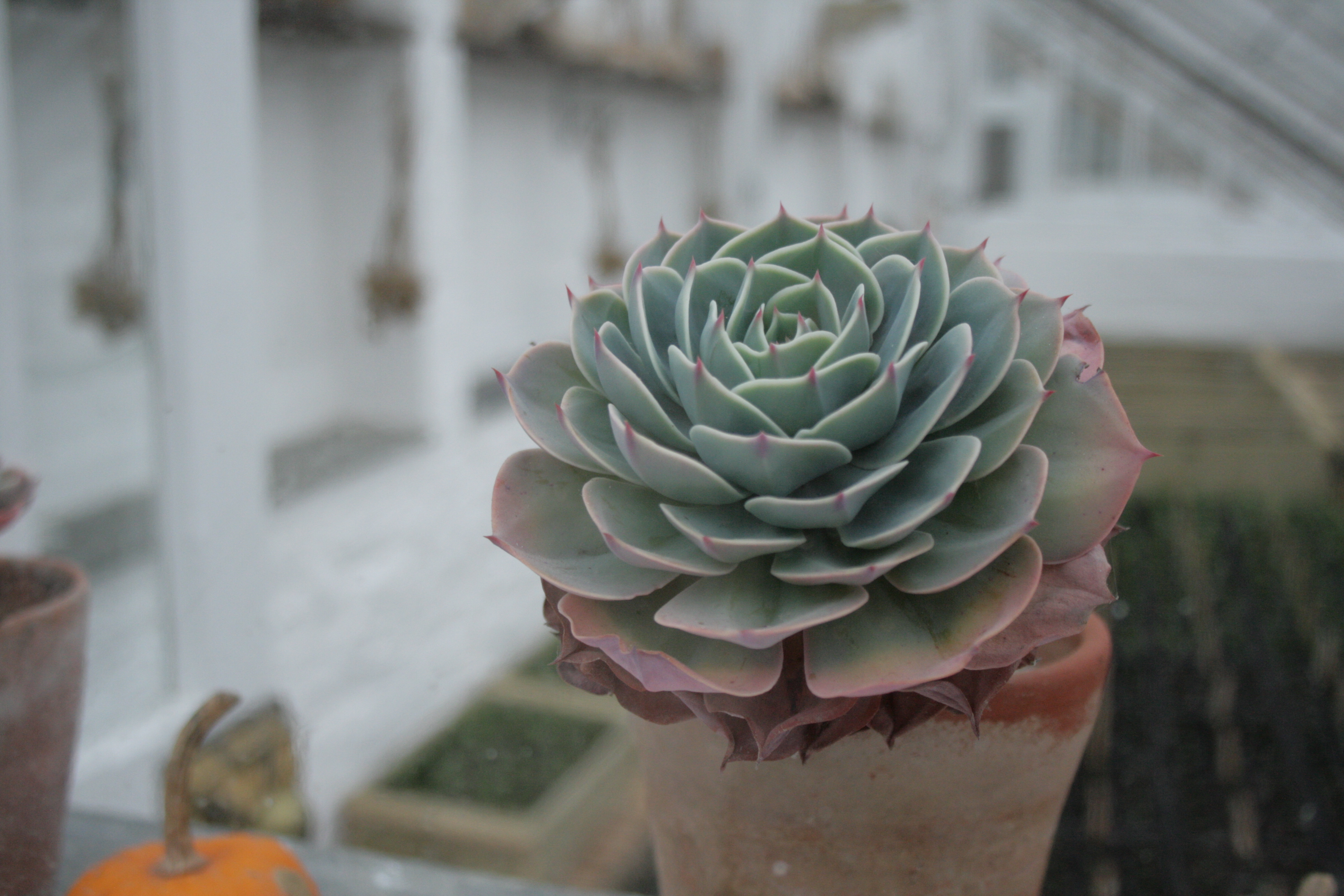 I love this succulent plant by the way and am looking out for something similar for my desk at work. The succulents were housed in a white green house in the gardens and the gardener had left some small pumpkins out next to them so I played around trying to get some snaps of them too. That part didn’t work out so well unfortunately but it helped me learn some lessons about depth of field in a photograph for the next time I’m with my camera.