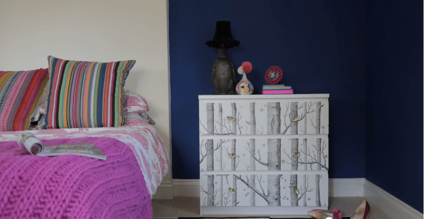 We have some of these rather ugly Ikea chest of drawers in our spare bedroom, except that ours are slightly worse as they are not white but the ‘birch’ kind that were very popular when we bought our first property. My apologies if I’ve offended anyone out there who loves this range but I’ve fallen out of love with ours. Anyhow, after watching Sophie’s video, I’ve been inspired to up-cycle our chest of drawers and hope to make a start this weekend. I’m planning on painting the chest with chalk paint and then covering the front with some lovely wallpaper like the one Sophie has used. I asked her via her channel where she got it from and it’s Cole and Son should you want some for yourself.