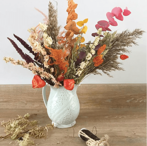 If you want the bright and colourful look of natural plants without the hassle of remembering to water them, why not start with dried flowers? There are some amazing online retailers selling gorgeous bunches of dried flowers right now. I got these from Florence and Flowers on Etsy as part of a wreath making set. I eventually made them into a wreath but loved the look of them so much that I’m planning on buying a bunch of festive dried flowers from The Petal Patisserie.
