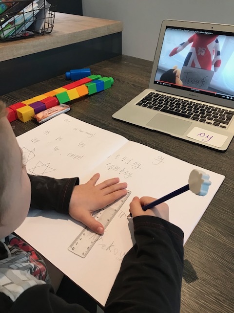 Then it’s back home for 9am to take over from my husband in time for his first Zoom call of the day. I grab a drink and some breakfast and sit down with my 5 year old to do a bit of learning for 30-40 mins – usually English or Maths.
