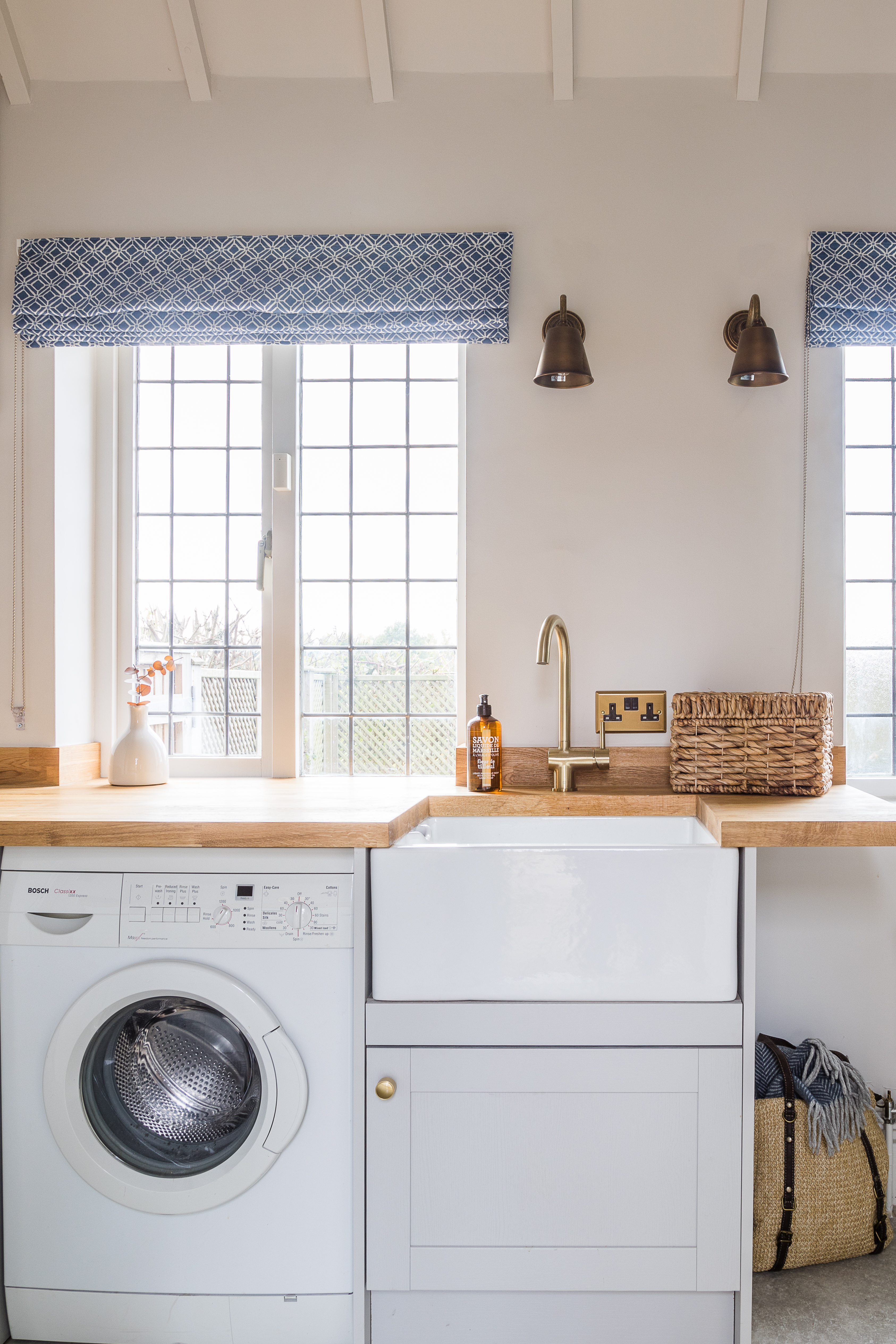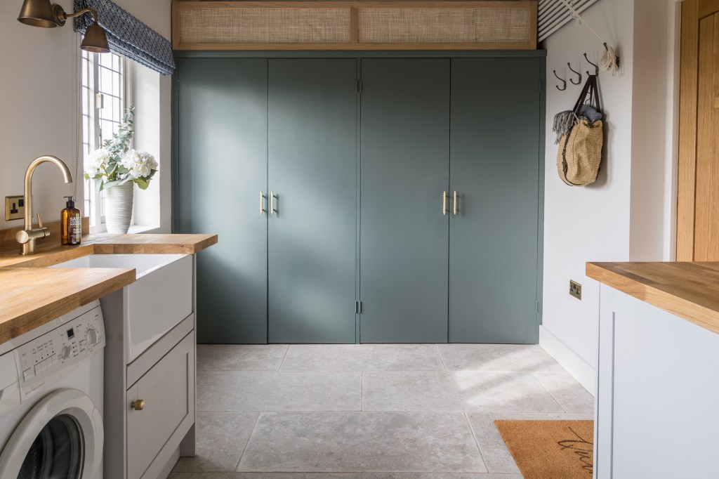 This beautiful utility room is one of the many rooms that were renovated in the Kent Farmhouse that I worked on with fellow interior designer, Sophia Fish. The utility room needed to work as both storage and as a practical, functional room for the family who lives here. When I first viewed the space, it was of a good size but lacked any cohesion or design style. The room functioned mainly as a storage space and hadn’t been updated for quite some time. After lots of design meetings with the client, I opted for a calm, sophisticated design which met the brief of serving the family for both storage and for utility needs.